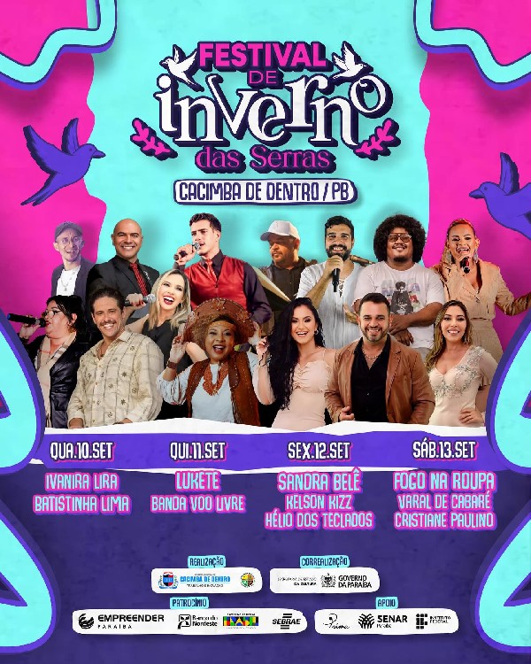 O clima de arte, cultura e celebração já tomou conta da cidade com a chegada do 1º Festival de Inverno das Serras. Promovido pela Prefeitura Municipal de Cacimba de Dentro, em parceria com o Fórum de Turismo Sustentável do Curimataú e demais apoiadores, o evento promete transformar a cidade em um verdadeiro palco de talentos locais e regionais.