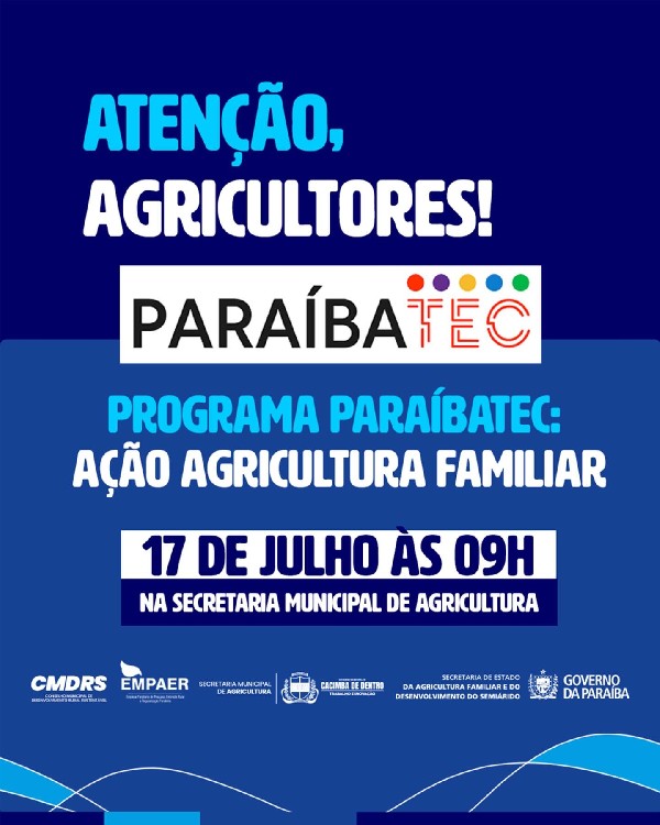 A Secretaria Municipal de Agricultura de Cacimba de Dentro convida os presidentes de associações e representantes de sindicatos rurais para participarem de um importante encontro sobre o Programa ParaíbaTEC.