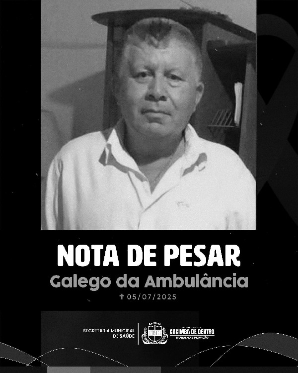 O Governo Municipal de Cacimba de Dentro, por meio da Secretaria Municipal de Saúde, manifesta profundo pesar pelo falecimento de Galego da Ambulância, servidor público que dedicou sua vida ao cuidado com a saúde da população.