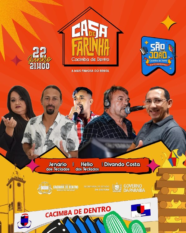 A Casa de Farinha, ponto tradicional das festividades juninas em Cacimba de Dentro, recebe nesta noite mais uma edição especial do São João 2025, reunindo música, cultura e a alegria do povo nordestino.