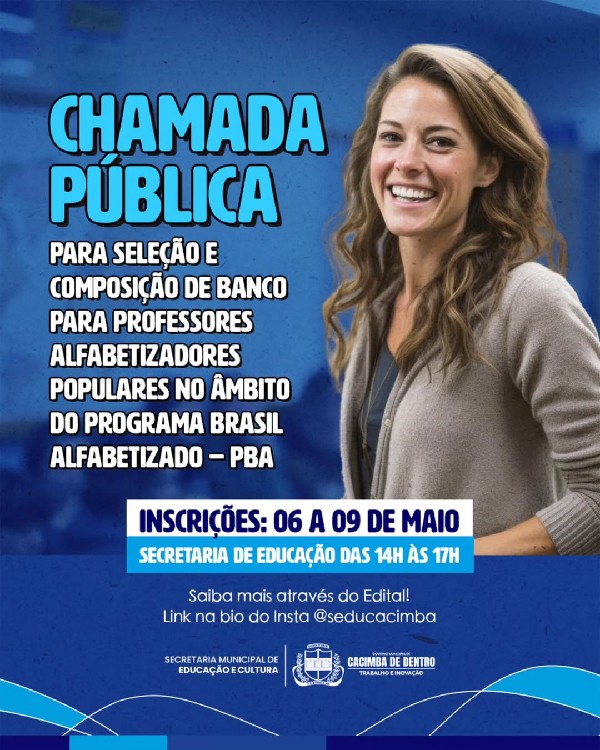 Atenção, educadores e educadoras: estão abertas as inscrições para a "Seleção e Composição de Banco de Professores Alfabetizadores Populares" no âmbito do Programa Brasil Alfabetizado - PBA!