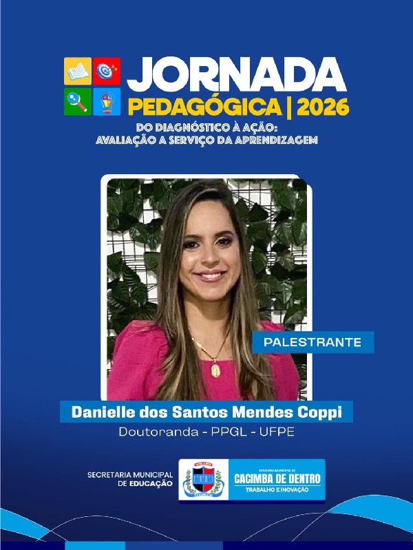 Nos dias 05 e 06 de fevereiro, a partir das 8h, a Prefeitura de Cacimba de Dentro, por meio da Secretaria Municipal de Educação, realiza a Jornada Pedagógica 2026, com o tema "Do diagnóstico à ação: avaliação a serviço da aprendizagem".