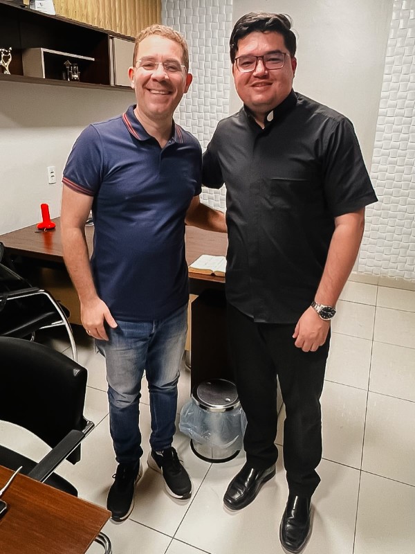 O prefeito Pollyanno recebeu, em seu gabinete, o pároco da Área Pastoral São Francisco, Pe. Robson, para dialogar sobre os preparativos da tradicional Festa do Santuário de Nossa Senhora dos Remédios, realizada na comunidade de Boa Vista.