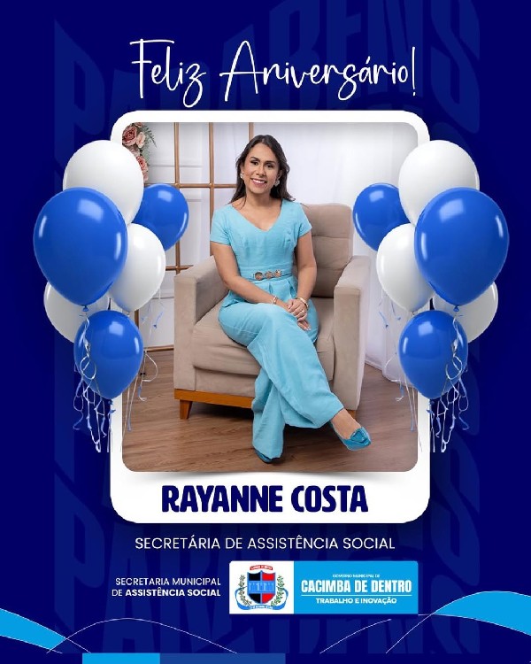A Prefeitura Municipal de Cacimba de Dentro parabeniza, com grande carinho, a Primeira-Dama e Secretária de Assistência Social, pelo seu aniversário!