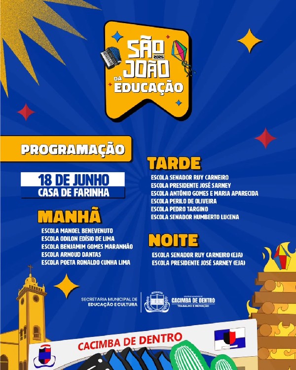 O arraiá vai celebrar a união entre educação e cultura, com apresentações artísticas, danças típicas e um verdadeiro arrastapé arretado, reforçando o compromisso da rede municipal de ensino com a preservação das raízes e da identidade nordestina.