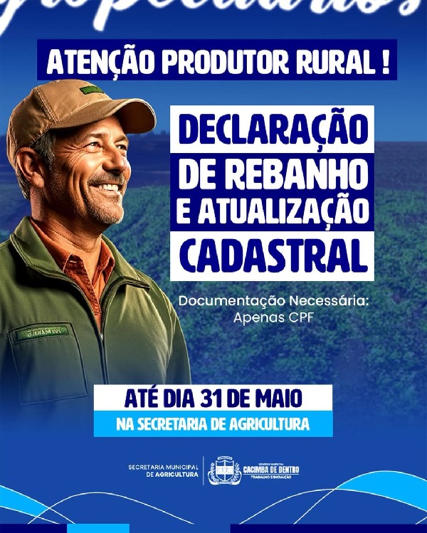 Os produtores devem comparecer à Secretaria Municipal de Agricultura, levando apenas o CPF para realizar a atualização.
