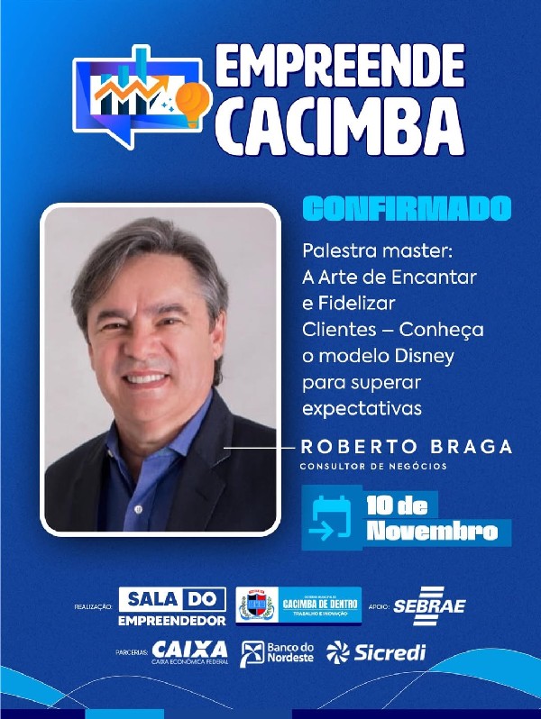 A oportunidade que você esperava chegou! Está chegando o Empreende Cacimba, um evento totalmente voltado para quem quer crescer, inovar e fazer networking com pessoas que acreditam no poder do empreendedorismo.