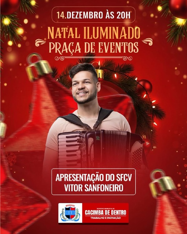 Uma noite especial na Praça de Eventos, com a apresentação do Coral do SCFV e de Vitor Sanfoneiro, levando música, emoção e o verdadeiro espírito natalino para toda a população.